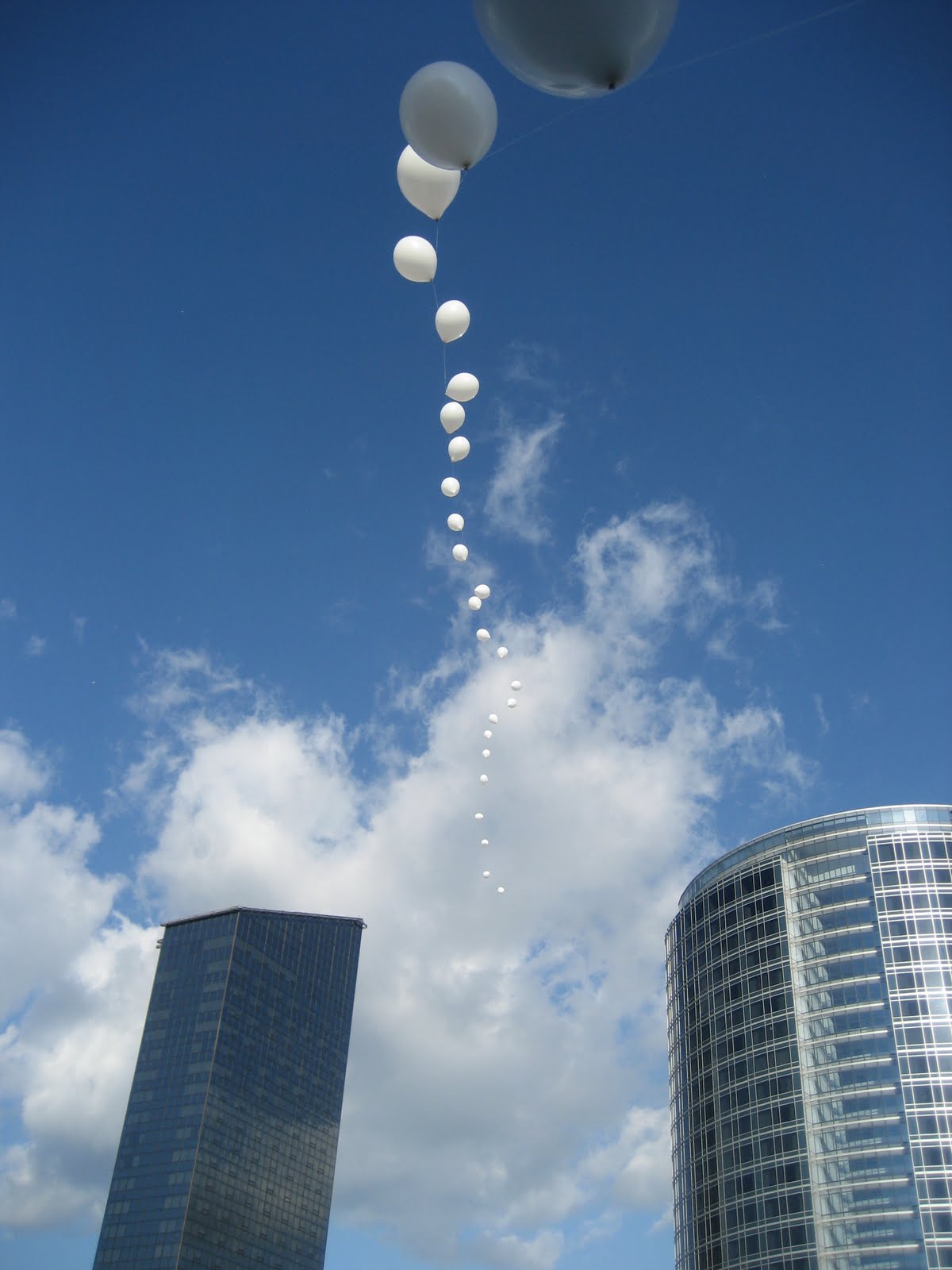 Balloon Chain by New York artists Robert Bose and Michael Cha. Downtown Grand Rapids during Art Prize 2010.